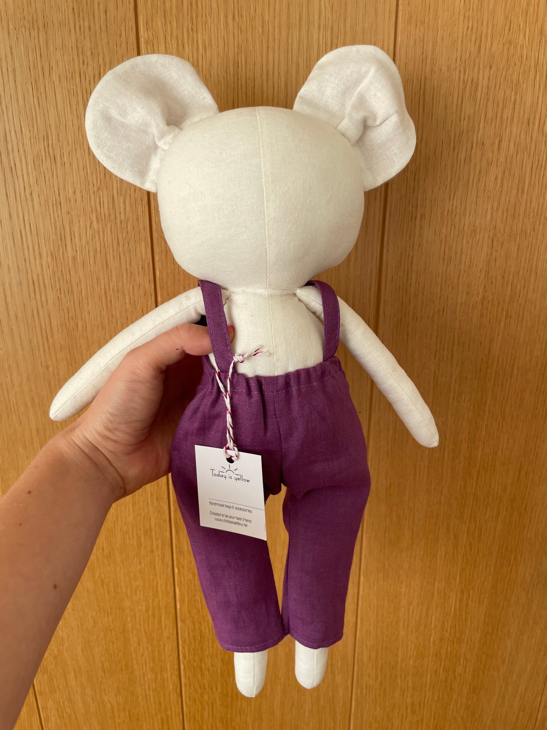 'Today is Yellow' is een merkje dat gecreëerd werd door Ineke. Ineke werkt thuis in een klein atelier waar ze haar knuffels en strikjes maakt. Ze gebruikt steeds duurzame en natuurlijke stoffen zoals katoen en linnen. Deze handgemaakte pareltjes hebben allemaal een uniek karakter. Ze staan te popelen om beste vriendjes te worden met jullie kleine schat!
